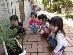 と子ども同士会話をして、トマト成長を楽しんでいました![]()