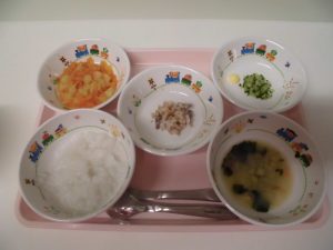 2018.07.13|給食ピックアップ 7月13日の給食☺ <幼児食> *ごはん *わかめときのこのみそ汁 *魚の唐揚げ *ポテトサラダ *おくらのおかか和え <離乳食> *ごはん *味噌汁 *煮魚 *煮物 *刻みきゅうり 前へ 次へ