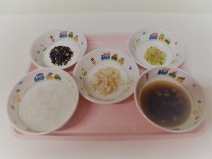 2018.07.17|給食ピックアップ 7月17日の給食☺ <幼児食> *ごはん *わかめと焼き麩のみそ汁 *鯵のかば焼き *ひじきの炒り煮 *キュウリの梅和え <離乳食> *ごはん *味噌汁 *魚の西京焼き *野菜のおかか和え *ひじき炒り煮 前へ 次へ
