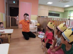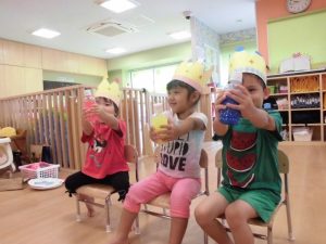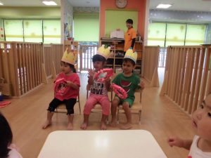 7月のお誕生児はりんご組のお友達3人です。(^^)/