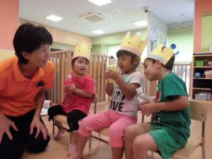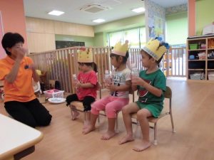 その後は3人に先生になってもらって魚の手遊びをして、お誕生日のお歌を歌ってお祝いしました。