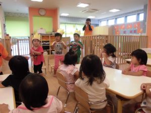 そしてみわこ先生からのお楽しみの出し物です。何が始まるのかな~と、みんなの目が美和子先生に集中します。