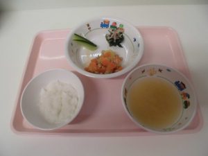 2018.07.30|給食ピックアップ 7月30日の給食☺ <幼児食> *ごはん *玉ねぎのみそ汁 *生姜焼き *ポテトサラダ *モロヘイヤのお浸し <離乳食> *ごはん *みそ汁 *そぼろ煮 *スティックきゅうり *モロヘイヤのお浸し 前へ 次へ