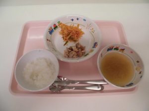 2018.08.15|給食ピックアップ 8月15日の給食☺ <幼児食> *ごはん *みそ汁 *照り焼きチキン *スパゲッティソテー <離乳食> *ごはん *みそ汁 *刻み照り焼きチキン *スパゲッティソテー 前へ 次へ