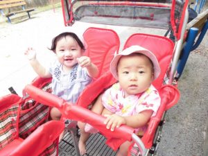 少しでもバギーが停車すると、大きな声で“早く動いて~”と言わんばかりに泣く事もあります(^^♪
