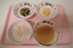 2018.08.18|給食ピックアップ 8月18日の給食☺ <幼児食> *ごはん *みそ汁 *なすとひき肉の味噌炒め *ポテトサラダ *飲むヨーグルト <離乳食> *お粥 *みそ汁 *なすとひき肉の味噌炒め *ゆで野菜 前へ 次へ