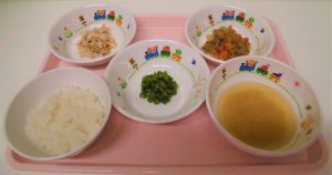 2018.08.28|給食ピックアップ 8月28日の給食☺ <幼児食> *ごはん *みそ汁 *魚の甘酢焼き *そぼろ煮 *インゲン塩ゆで <離乳食> *ごはん *みそ汁 *煮魚 *野菜の煮物 *インゲン塩ゆで 前へ 次へ