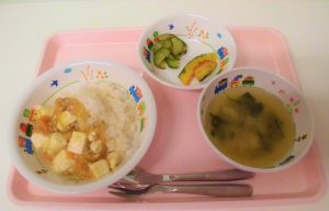 *ごはん *かぶの味噌汁 *マーボー豆腐 *梅和え *かぼちゃの素揚げ