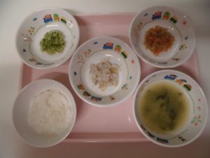 2018.10.02|給食ピックアップ 10月2日の給食☺ <幼児食> *ごはん *みそ汁 *ぶりの照り焼き *切り干し大根の煮物 *キュウリとキャベツのゆかり和え <離乳食> *お粥 *みそ汁 *煮魚 *切り干し大根の煮物 *おひたし 前へ 次へ