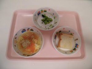 2018.10.25|給食ピックアップ 10月25日の給食☺ 本日は誕生日会メニューです(^^♪ <幼児食> *パン *肉団子スープ *おかか和え *スパゲティソテー <離乳食> *ぱん *肉団子汁 *ゆでブロッコリー 前へ 次へ