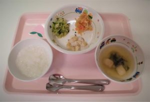 2018.10.30|給食ピックアップ 10月30日の給食☺ <幼児食> *ごはん *みそ汁 *ぶりの照り焼き *切り干し大根の煮物 *きゅうりとキャベツのゆかり和え <離乳食> *おかゆ *みそ汁 *煮魚 *切干し大根の煮物 *おひたし 前へ 次へ
