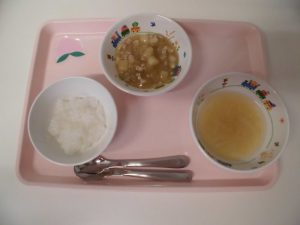2018.11.07|給食ピックアップ 11月7日の給食☺ <幼児食> *ごはん *みそ汁 *ジャーマンポテト *チキンソテーケチャップソースからめ *みかん缶 <離乳食> *お粥 *みそ汁 *そぼろ煮 前へ 次へ