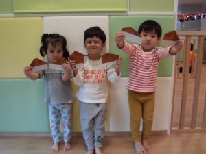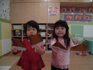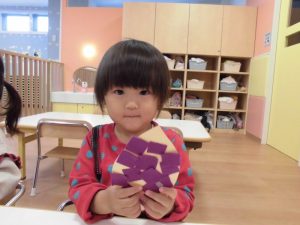 一人ひとり真剣な表情で折っていました。出来上がった折り紙を持って記念にパシャリ✨