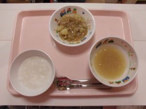 2018.11.21|給食ピックアップ 11月21日の給食☺ <幼児食> *ごはん *みそ汁 *ジャーマンポテト *チキンソテーケチャップソースからめ *みかん缶 <離乳食> *お粥 *みそ汁 *そぼろ煮 前へ 次へ