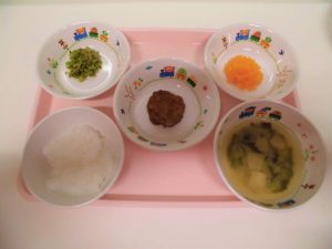 2018.11.26|給食ピックアップ 11月26日の給食☺ <✨誕生会メニュー✨> <幼児食> *ごはん *みそ汁 *ハンバーグ煮込み *おかか和え *人参甘煮 <離乳食> *おかゆ *みそ汁 *ハンバーグ煮込み *おかか和え *ゆで人参 前へ 次へ