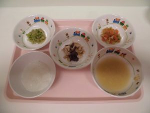 2018.11.27|給食ピックアップ 11月27日の給食☺ <幼児食> *ごはん *みそ汁 *ブリの照り焼き *梅和え *含め煮 <離乳食> *おかゆ *みそ汁 *ぶり照り焼き *おかか和え *含め煮 前へ 次へ