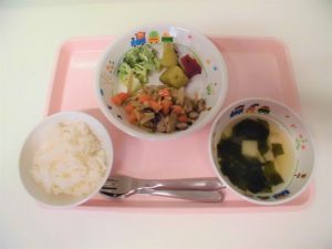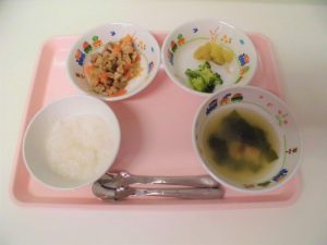 2018.11.28|給食ピックアップ 11月28日の給食☺ <幼児食> *ごはん *みそ汁 *筑前煮 *サツマイモ甘煮 *ゆでブロッコリー <離乳食> *おかゆ *みそ汁 *含め煮 *サツマイモ甘煮 *ゆでブロッコリー 前へ 次へ
