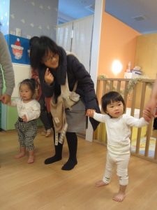 保護者の方々が保育室に入って来ると、子どもたちは満面の笑顔で手を振ったり、顔を見て思わず「ママー」と言いながら涙を流す姿も、、、