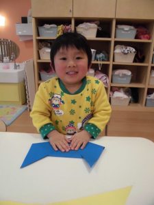 画用紙を保育者と一緒に折りました!何になるかはお楽しみに、、、✨