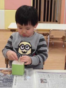豆を入れる箱の製作にも挑戦!表情は真剣です(^^)/