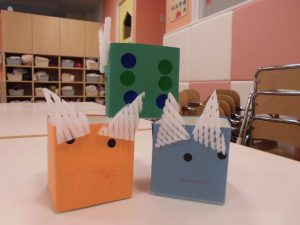 各クラスとも、使用した材料や素材は様々。とても個性が出ていて素敵な豆入れが出来ました(^^)/