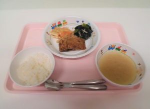 *ごはん *みそ汁 *さばの竜田揚げ *切干大根の煮物 *ほうれん草のおかか和え
