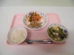 *ごはん *みそ汁 *豚肉のみそ焼き *スパゲティーソテー *みかん缶