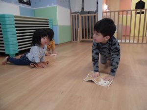 保育者が何も伝えていないのですが、自然と始まった行動です!
