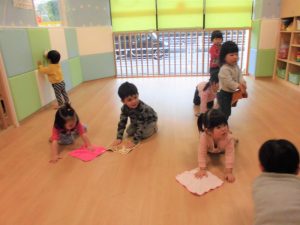 ある日の玩具遊びの後、タオルを取り出して、、、