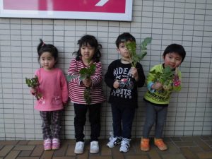 りんご組の二十日大根が収穫の時期を迎えました!(^^)!