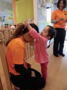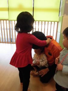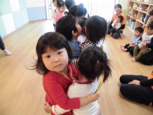 保育者「素敵なメダルをありがとう!大きい保育園に行っても、頑張ってね」