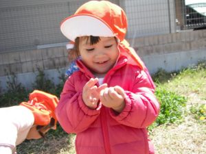 ある女の子「せんせい、みてみて」「はな、あったよ」と話したり、、、