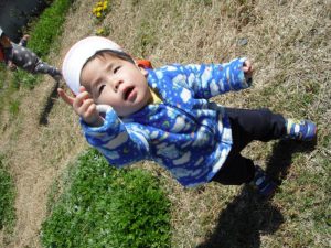 室内で過ごしていると、大きな声で泣いている子も外に出ると泣き止んで、にっこり笑顔になっていました!