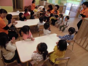 去年度はみんなが新入園児でしたが、今年度は0歳児5名、1歳児2名の7名が新しく仲間入りしました(*^_^*)