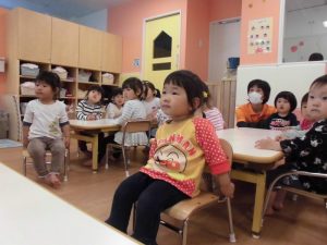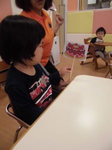 今月のお誕生日児はもも組の2人といちご組の1人のお友達でした。