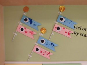 もも組は手型と足型を取り鯉のぼりの鱗に見立てました♥