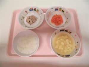 2019.05.10|給食ピックアップ 5月10日の給食? <未満児食> ・ごはん ・みそ汁 ・魚のフライ ・ひじきの炒り煮 ・インゲンのおかか和え ・みかん缶 <離乳食> ・おかゆ ・みそ汁 ・煮魚 ・茹でにんじん 前へ 次へ