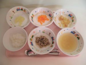 2019.05.13|給食ピックアップ 5月13日の給食? <未満児食> ・ごはん ・みそ汁 ・すき焼き風煮 ・粉ふき芋 ・りんご <離乳食> ・おかゆ ・みそ汁 ・そぼろ煮 ・茹でにんじん ・茹でじゃがいも ・すりおろしりんご 前へ 次へ
