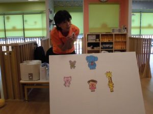 保育者の出し物はみわこ先生による「いないいないばあ」のパネルシアターです?