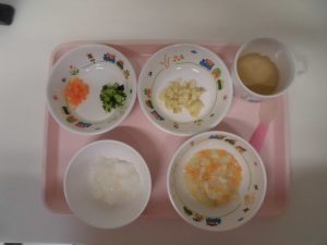 2019.07.01|給食ピックアップ 7月1日の給食? <未満児食> ・ご飯 ・ポークカレーシチュー ・スティックサラダ ・バナナ <離乳食> ・お粥 ・クリームシチュー ・スティックきゅうり・人参 ・バナナ 前へ 次へ