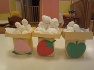 もも組、いちご組、りんご組の順に並べると、だんだん丸く上手に丸められるようになっているのがわかりますね!(^^)!