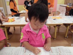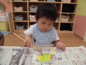 筆を使っての絵の具は初めてでしたが、上手に塗ることが出来ていましたよ(*^_^*)
