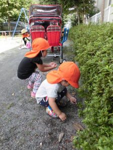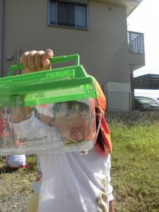 散歩(探検)に出かける時は、必ず虫かごを持参するりんご組の子どもたち♬