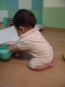 “これは何だろう~”と手を伸ばしたり、触ったりしていますよ![]()