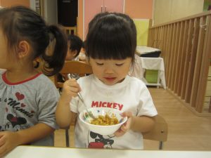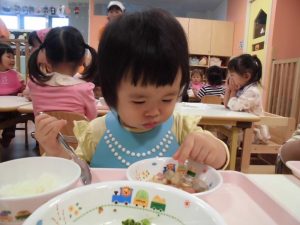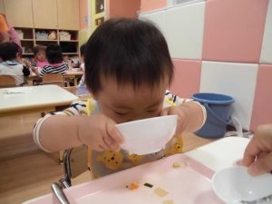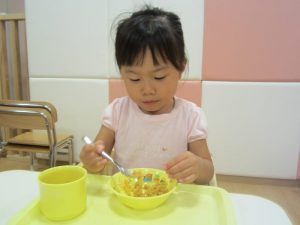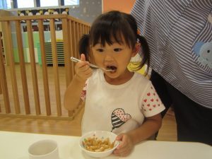 おやつも給食も楽しんで自分で食べています(*´ω`*)