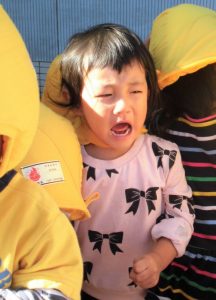 いつもと違う雰囲気に驚いて泣いてしまう子もいました![]()