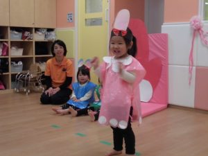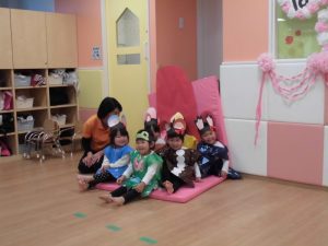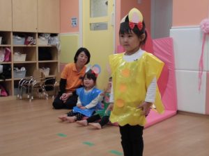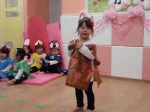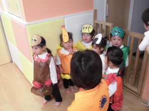 また、散歩の時やお部屋でお友だちと遊んでいる時に劇の歌を口ずさんだり、自分の役の事を話したり、お友だちと一緒に歌いながら踊ったりする可愛い姿も見られました(*^^*)