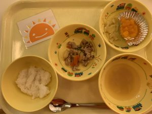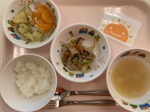 ご飯 味噌汁 すき焼き風煮 粉ふき芋 みかん缶