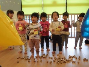 最初は遠慮がちに投げていましたが、後半になると風船が割れてしまうか心配になるほど勢いよく豆を投げていました![]()