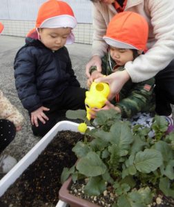二十日大根とほうれん草に水をあげました。